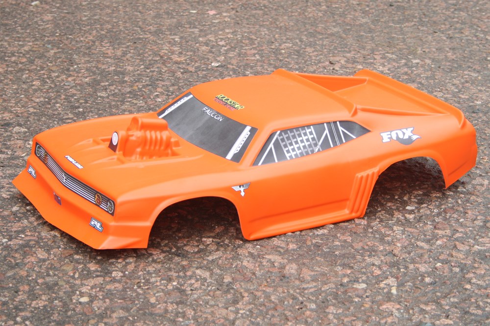 Усиленный вырезанный кузов в стиле "Muscle car" Ford Falcon из ударопрочного полимера для радиоуправляемых моделей масштаба 1/8.